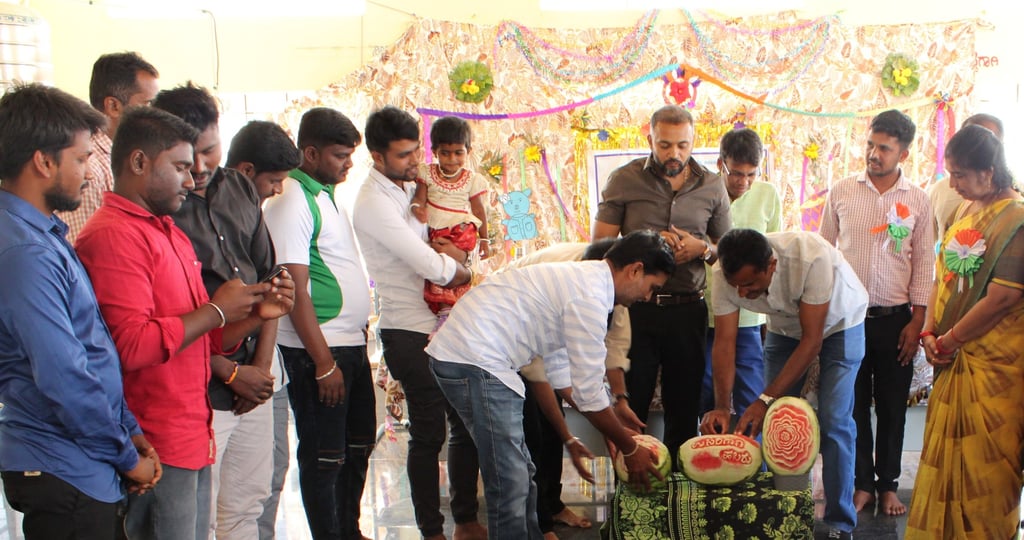 Green Celebrations: Also known as Eco-Friendly Celebrations, this initiative promotes sustainable practices by replacing cakes with watermelons, reducing waste, and supporting local farmers. It is one of the flagship initiatives of Usirigaagi Hasiru. Adopted in schools, colleges, and communities, the practice has gained widespread acceptance as an eco-friendly and meaningful alternative.