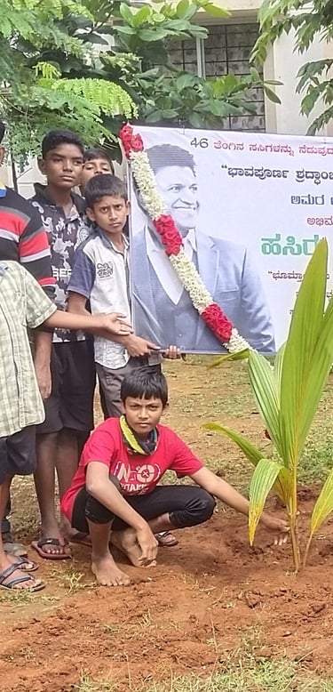 Puneetha Namana: To honor the legacy of "Yuvaratna" Late Puneeth Rajkumar, Usirigaagi Hasiru planted 50 coconut saplings in each residential school in Chikkaballapur district and in a few schools in Bangalore Rural district. The initiative will expand to all residential schools across the Bayaluseeme region, promoting greener and more sustainable school environments.