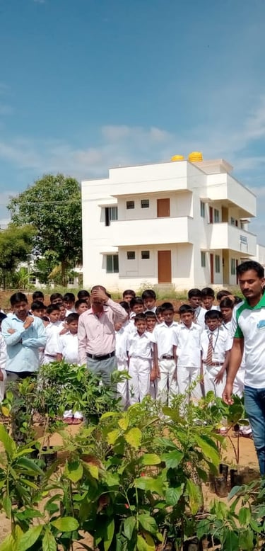 Hasiru Yagna: This flagship initiative transforms residential schools into model green campuses. Each school receives 1,000–3,000 saplings—including indigenous, fruit-bearing, medicinal, and ornamental plants—with drip irrigation and alternative water sources for sustainability. Students actively participate in planting and care, gaining environmental awareness. Implemented in 25 schools across Chikkaballapur, Kolar, Bengaluru Rural and Tumkuru districts, the initiative has created self-sustaining green spaces, with fruit-bearing saplings and school-grown groceries highlighting its impact.