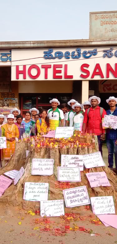 Tree Conserve Campaign: Usirigaagi Hasiru combats indiscriminate tree felling through awareness initiatives, including symbolic funerals for chopped trees and the #Save_Trees_to_Build_Green_Environment signature campaign. Engaging local communities, students, and civil societies, the campaign has sparked widespread activism, saved numerous trees, and strengthened public opposition to deforestation. Protests against BESCOM and the Forest Department have also led to commitments to protect urban and roadside greenery.