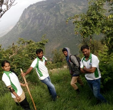 Seedlings: In collaboration with youth groups, NSS volunteers, like-minded community organizations, and MSW trainees, members lead rainy-season seed-sowing and seed-ball spreading initiatives in hill stations to support reforestation and ecological restoration across Karnataka.