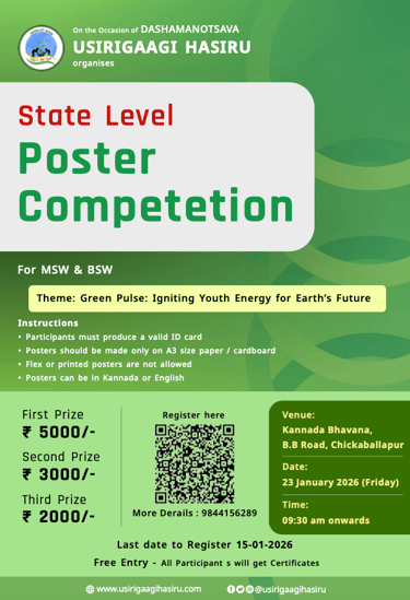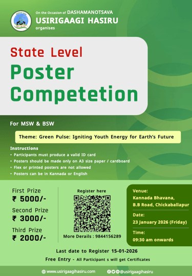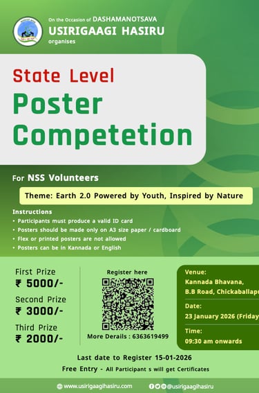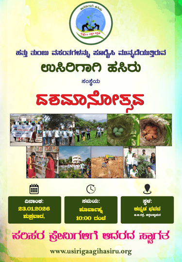 Over the past decade, the Usirigaagi Hasiru team, led by Dr. Gangadhara Reddy N, has made remarkable efforts towards environmental conservation, transforming schools in the districts of Chikkaballapura and Kolar into flourishing green regions. I wholeheartedly wish the team continued success in their yeoman service, dedicated to safeguarding our environment and preserving this peaceful, beautiful land for future generations.